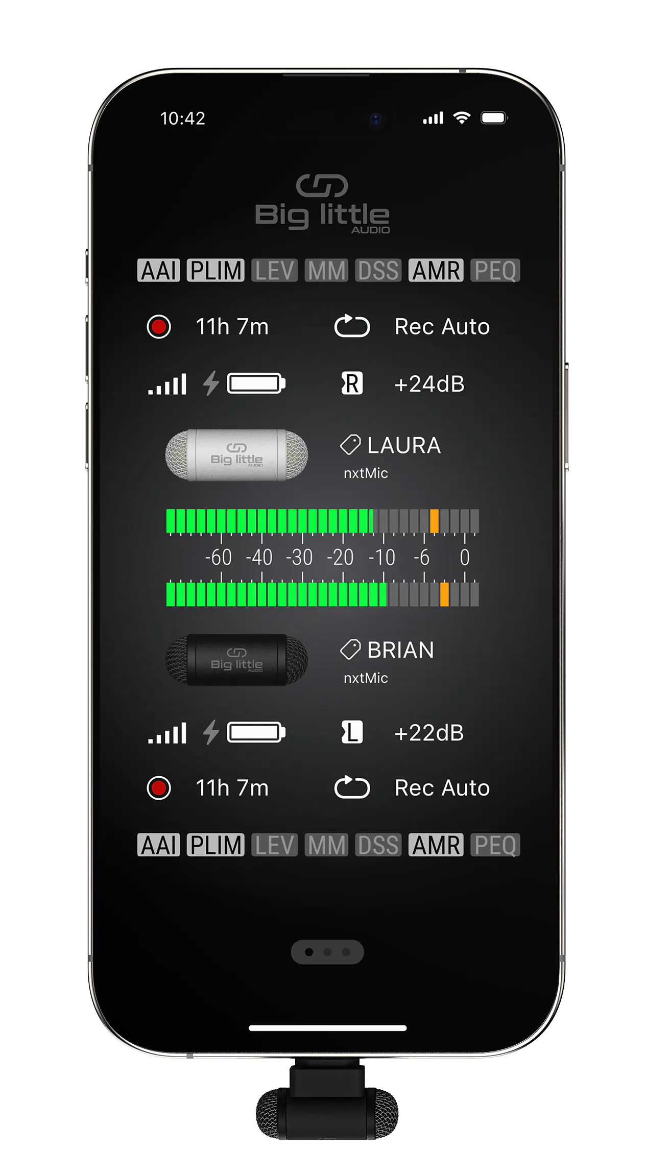 Advanced Audio Intelligence is a groundbreaking technology in nxtMic that analyzes and refines audio in real time. It makes precise audio adjustments just like a sound engineer would, but more effectively than even a seasoned pro sound engineer can do. From mic placement field correction and auto de-essing to mic modeling, AAI handles it all on your command. Featuring real-time, transparent ambient noise reduction and no-cloud, AI-enhanced, studio-grade voice isolation to clean up recordings made in busy environments, nxtMic with AAI delivers stunning results every time.